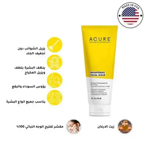 مقشر نباتي لطيف وفعّال من ماركة Acure، مصمم لتفتيح البشرة وتنظيفها بعمق دون التسبب في جفاف أو تهيج. يحتوي على مكونات طبيعية مثل عشب البحر، الطين الأخضر الفرنسي، قشر الليمون، وزنبق مادونا، وتعمل هذه التركيبة على إزالة الشوائب، تقشير الجلد الميت، وتنشيط البشرة لتبدو أكثر إشراقًا ونضارة