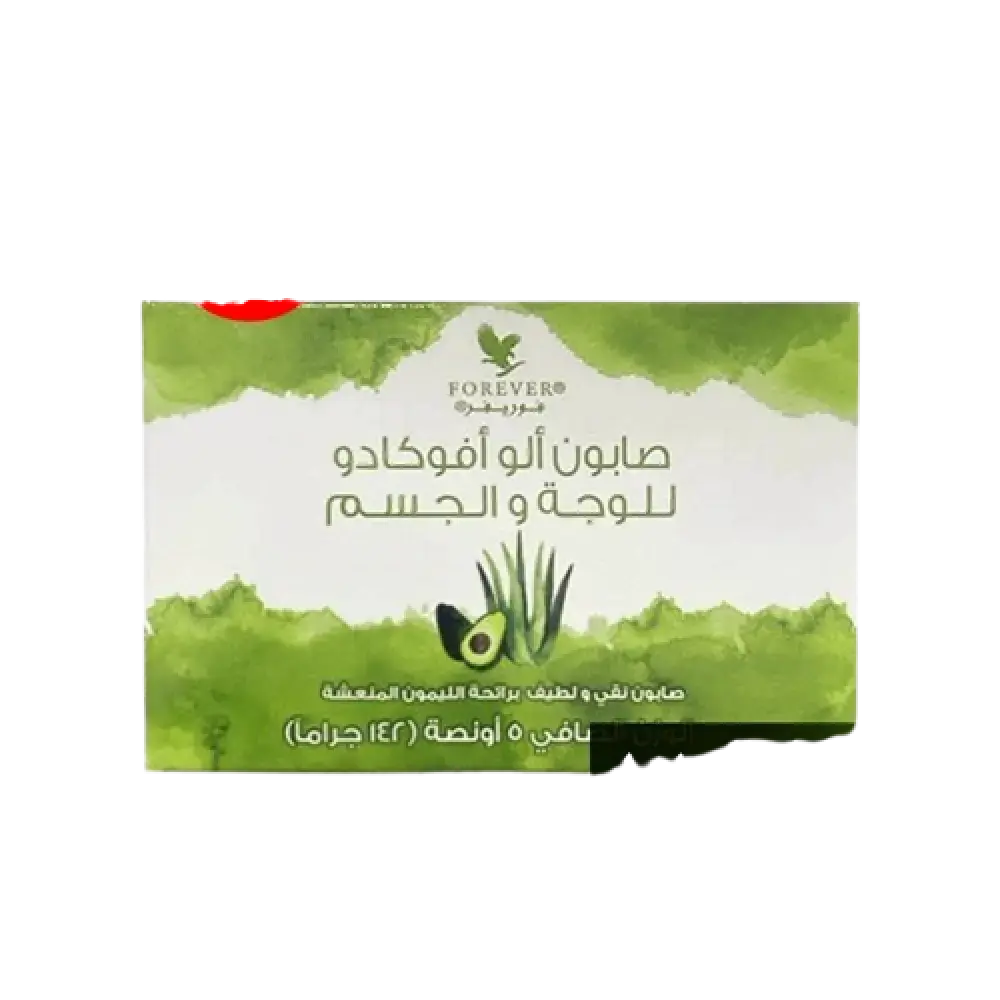 🥑 صابونة العناية بالوجه والجسم بالأفوكادو – 142 غرام صابونة طبيعية من إنتاج شركة فوريفر، تحتوي على زبدة الأفوكادو النقية بنسبة 100%، وتُستخدم لتنظيف البشرة بعمق وترطيبها بلطف. مثالية لجميع أنواع البشرة، خصوصًا الجافة والحساسة، وتُساعد على إزالة البثور، توحيد اللون، وتنعيم الجلد. تحتوي أيضًا على الألوفيرا وفيتامينات A وC وE، وتمنح الجسم رائحة حمضية منعشة تدوم طوال اليوم.