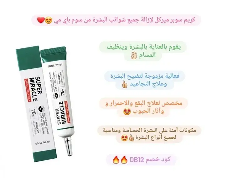 كريم علاجي مركز بتركيبة مبتكرة من ماركة Some By Mi الكورية، مصمم خصيصًا لإزالة شوائب البشرة وعلاج البقع وآثار حب الشباب. يحتوي على مزيج قوي من أحماض التقشير الطبيعية (AHA، BHA، PHA)، بالإضافة إلى مركب تروسيكا بنسبة 75% ود-بانثينول بتركيز 10,000 جزء في المليون، مما يمنح البشرة تنظيفًا عميقًا، تهدئة فعالة، وترطيب متوازن.
