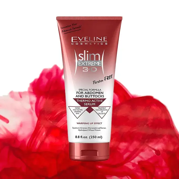 سيروم تنحيف فعّال من ماركة Eveline، يعمل بتقنية حرارية مبتكرة تساعد على تحفيز حرق الدهون تحت الجلد وتحسين شكل الجسم في مناطق الخصر، الأرداف، والبطن. تركيبته تحتوي على مكونات نشطة حراريًا تتغلغل بعمق في البشرة، مما يعزز الدورة الدموية ويمنح الجلد مظهرًا مشدودًا وأكثر مرونة.